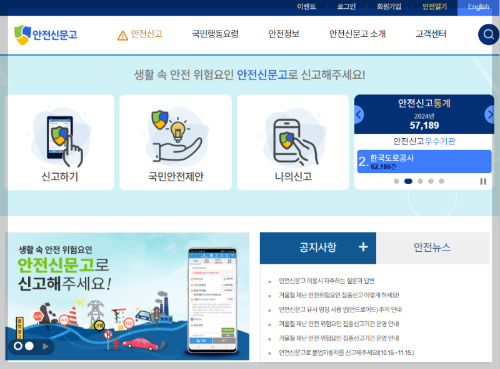 * 안전신문고(앱, 누리집 http://www.safetyreport.go.kr) : 국민 누구나 생활 속 위험 요인을 사진이나 동영상으로 찍어 신고하는 시스템